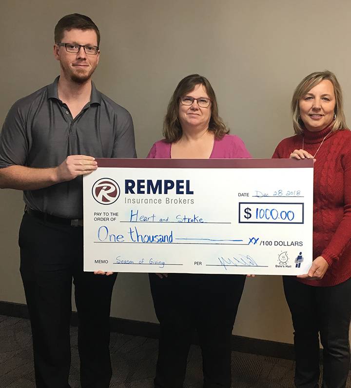 Rempel Insurance has donated $1,000 to the Heart and Stroke Foundation.